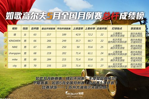 “如歌室內(nèi)高爾夫5月全國月例賽”已經(jīng)圓滿結(jié)束啦!各位參賽球手的成績和各獎名次揭曉!