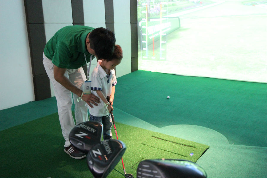 同樣讓如歌高爾夫展廳熱鬧非凡的還有張雄武高爾夫工作室的青少兒高爾夫教學(xué)課堂。來自塘廈的小朋友在教練的指導(dǎo)下認(rèn)真地體驗(yàn)高爾夫揮桿,小小身板釋放大大的能量。初次接觸如歌高爾夫模擬系統(tǒng),小朋友的眼里滿是好奇與上前揮桿的渴望。