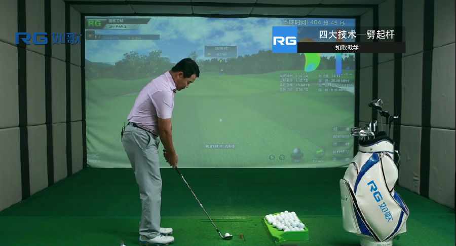 唐錦昌教練運(yùn)用如歌高爾夫模擬系統(tǒng)示范使用劈起桿