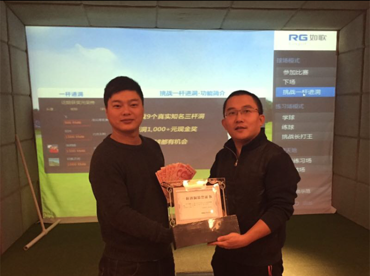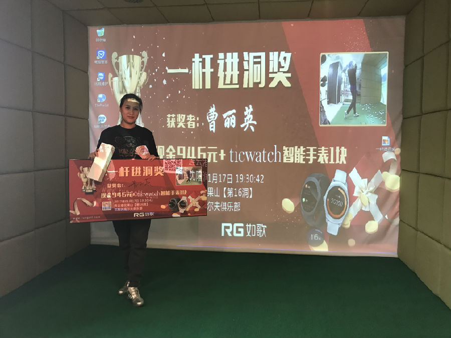 1月15日,球友【陽(yáng)光】在北京灣會(huì)室內(nèi)高爾夫俱樂(lè)部打球時(shí),在北京萬(wàn)柳如歌3D球場(chǎng)5號(hào)洞(球場(chǎng)HIO獎(jiǎng)金洞)打進(jìn)一桿進(jìn)洞,球友【陽(yáng)光】因此獲得由如歌提供的1000元幸運(yùn)獎(jiǎng)金及由出門問(wèn)問(wèn)贊助的ticwatch智能手表。