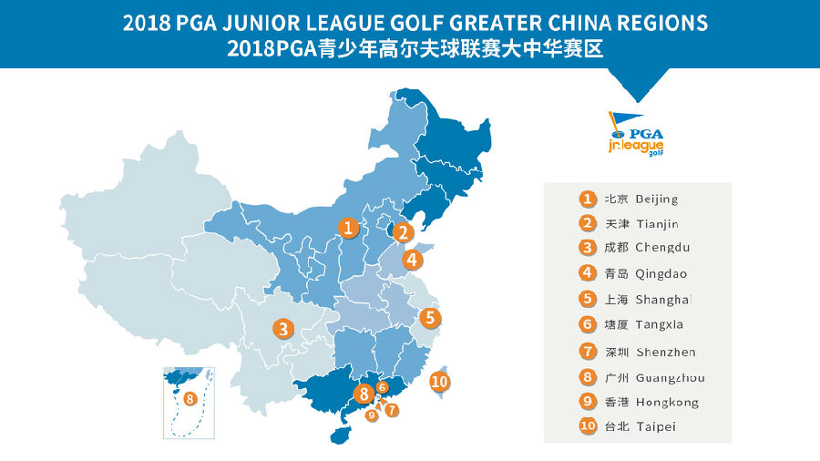 2018PGA青少年聯(lián)賽賽區(qū)分布