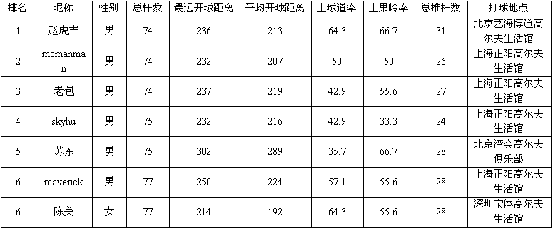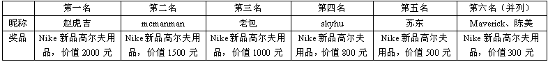 另對(duì)總桿前四名球技精湛的職業(yè)教練:湘江、王庭興、吳一刀、阿B,每人獎(jiǎng)勵(lì)高爾夫球一盒!恭喜!